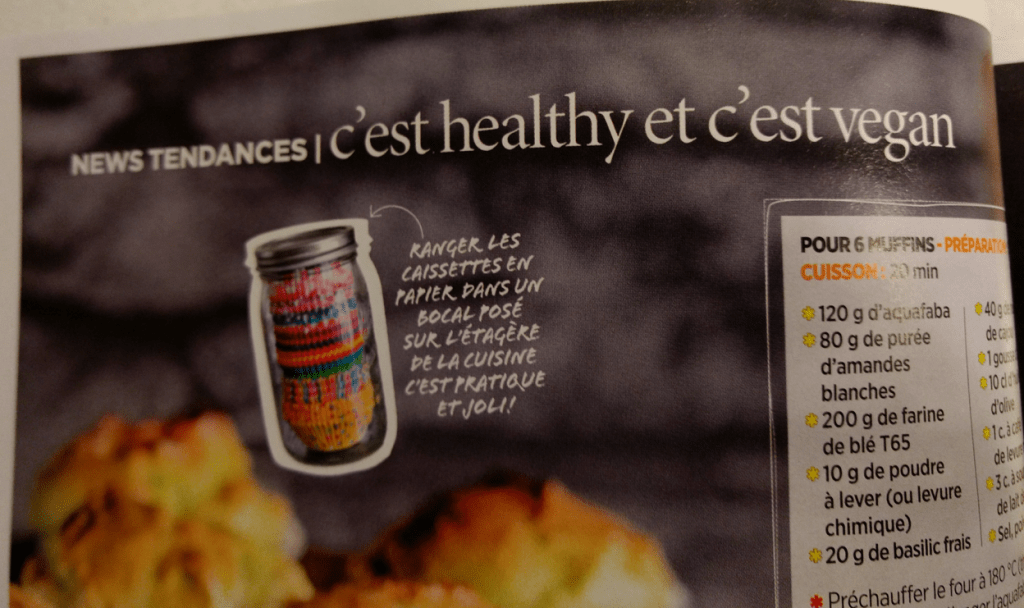 Cela dit, il me semble évident que si on faisait la même étude du côté de la publicité, de l’affichage et de certaines revues, les Français gagneraient haut la main (témoins les photos ci-dessous, tirées de la revue française Vital Food). Cela montre que l’anglais, en France, est une question d’image et de façade, tandis qu’au Québec, c’est une question d’imprégnation culturelle.